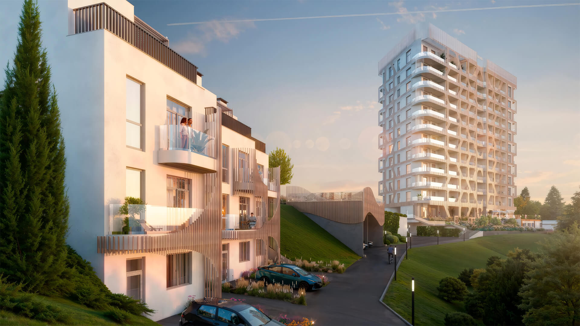 Комплекс включает 16 малоэтажных домов, каждая деталь которых продумана до мелочей. Высота потолков в квартирах достигает 3 метров, создавая ощущение простора и легкости. Просторные балконы и террасы позволяют жителям наслаждаться свежим воздухом и природными пейзажами, не покидая свой дом.